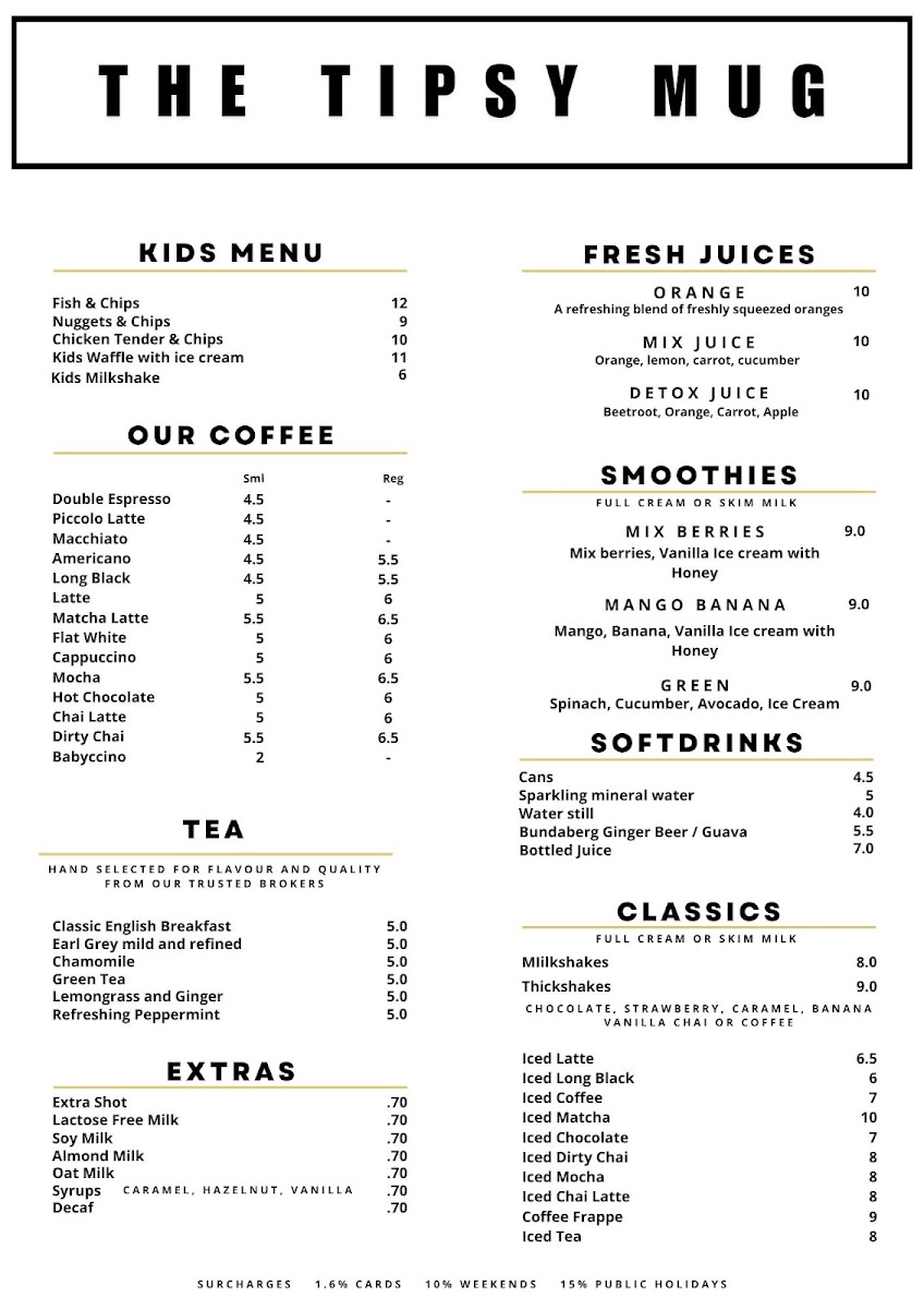 The Tipsy Mug Menu