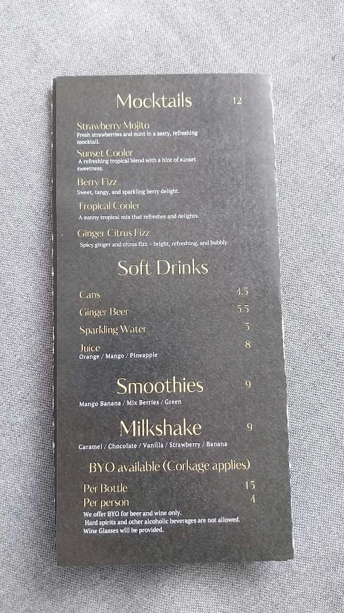 Tea features a range of classic options such as English Breakfast, Earl Grey, Chamomile, Green Tea, Lemongrass and Ginger, and Peppermint, each priced equally. These tea options provide a variety of traditional and herbal flavors for different preferences.